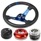 NRGSRK130HRD+200SL+101LB+016RBL, NRG Innovations 13.78" 350mm 3" Deep Dish Style Black Leather Blue Center Marking Blue Spokes Racing Steering Wheel Combo with 6 Hole Short Hub Adapter with Gen 2.0 Silver Quick Release with Black Lock Hub Kit SRK-130H